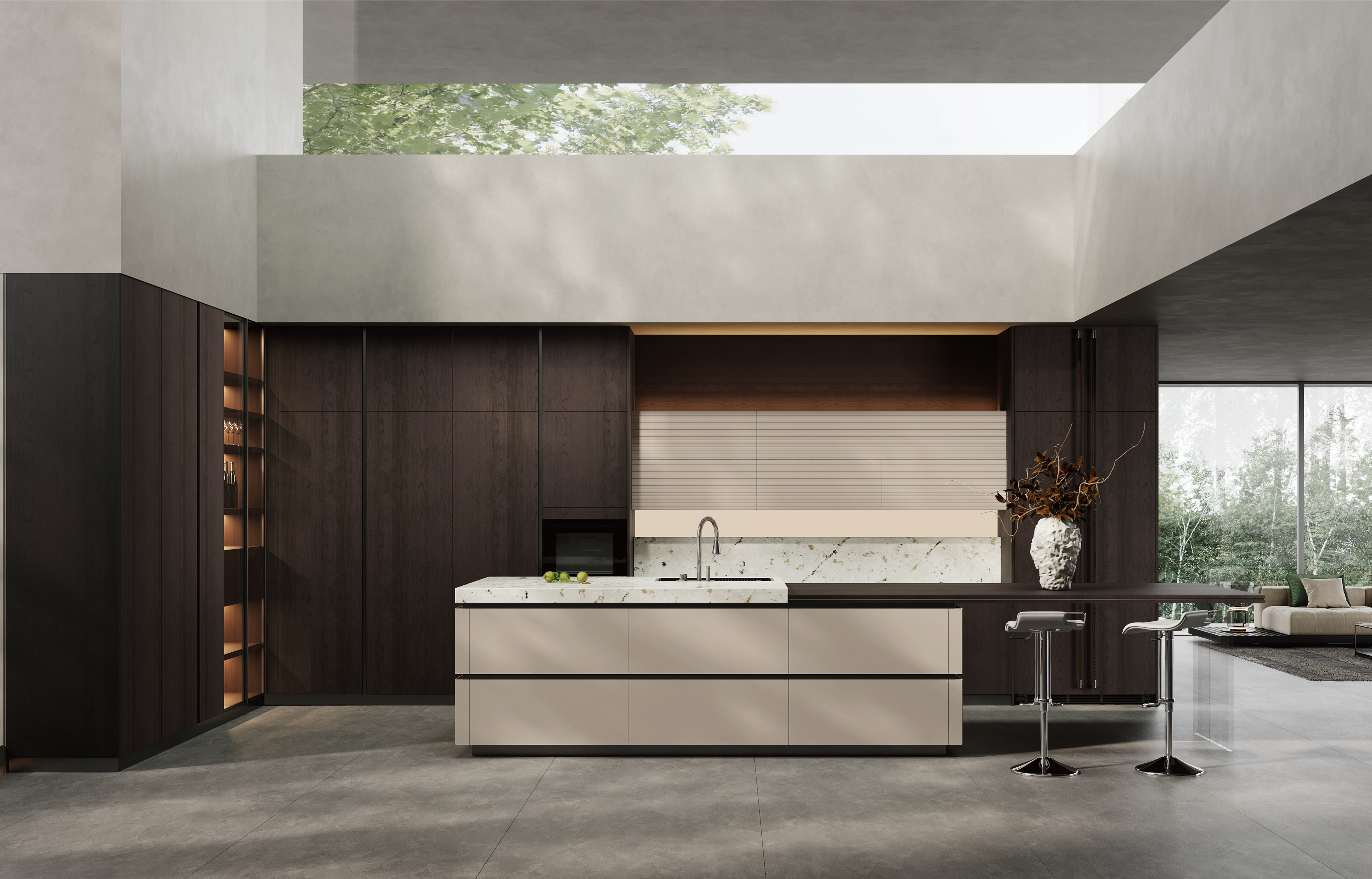 通过龙源国际厨柜量体裁柜,定制出适合主厨下厨的烹饪区和洗涤区的舒适高度。
